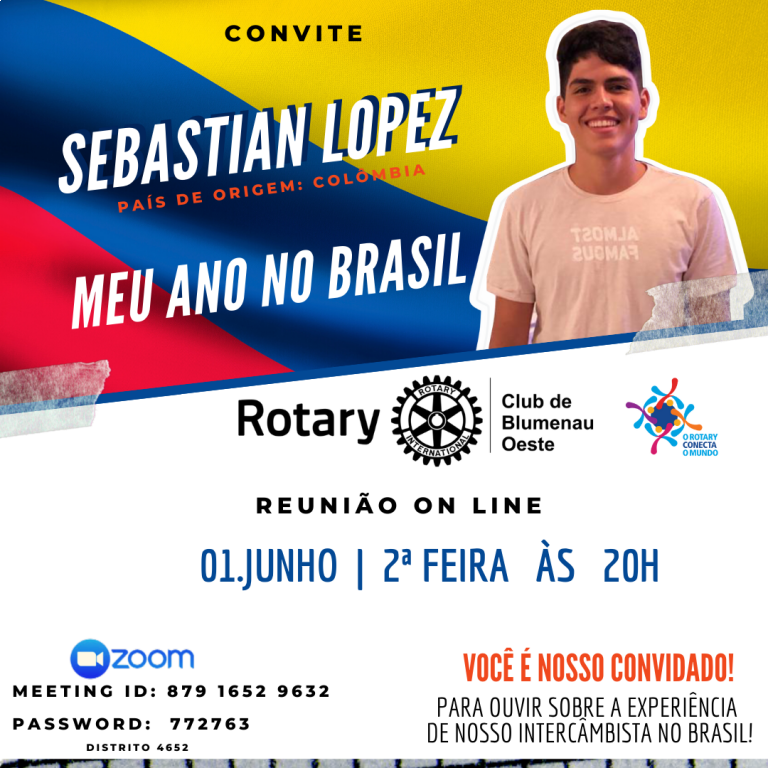 Convite para Reunião on line com Sebastian Lopes - Intercambista da Colômbia