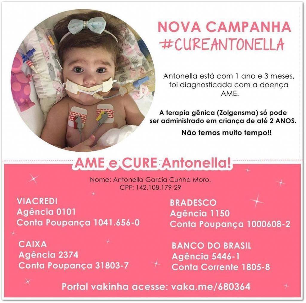 Nós do Rotary Indaial Palmeira, estamos juntos nesta campanha da menina Antonella Garcia da Cunha que possui apenas um ano e meio de idade e foi diagnosticada com Atrofia Muscular Espinhal (AME). A família precisa arrecadar um total de R$ 9 milhões, para custear o tratamento com um medicamento específico dos EUA.