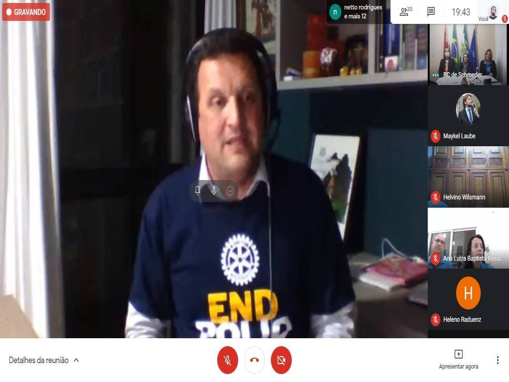 A transmissão de cargos de mais uma gestão do Rotary Club de Schroeder foi realizada na noite de 08/07/2020.