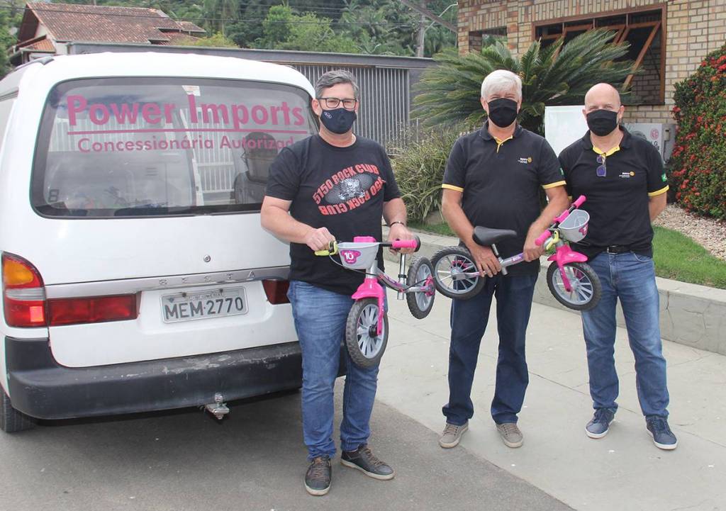 Participaram da visita o Presidente do Rotary Club Blumenau Victor Konder, Edson Jorge Fandaruff, o Presidente da Comissão de Projetos Humanitários, Waldemar Hasse e o Presidente da Comissão de imagem Pública, José Luis Pardal, para fazer a coleta do primeiro lote de bicicletas novas doadas para o projeto.