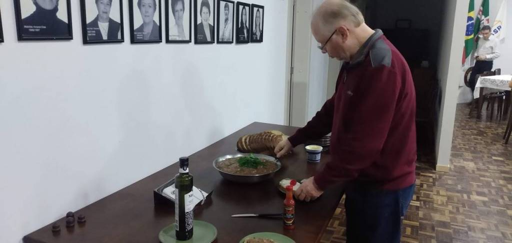 O cardápio da noite foi um delicioso Hackepeter servido pelo companheiro Mauro Bacsfalusi muito apreciado pelos presentes .