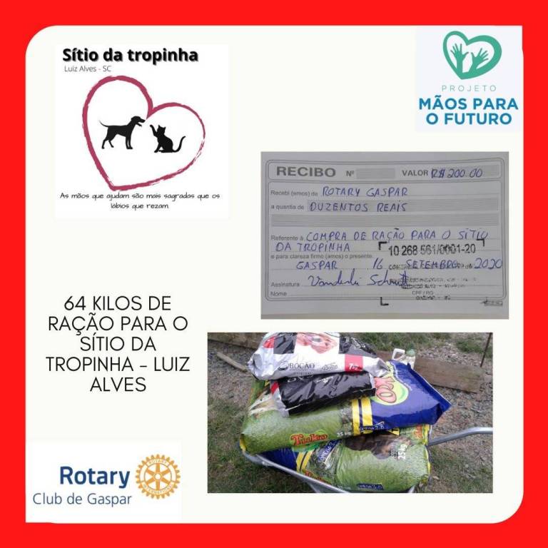 * R$ 200,00 - Compra de 64 kilos de ração para o Sítio da Tropinha