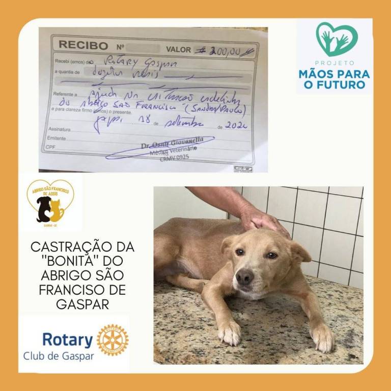 * R$ 200,00 - Castração da cachorrinha “Bonita” do Abrigo São Francisco de Assis
