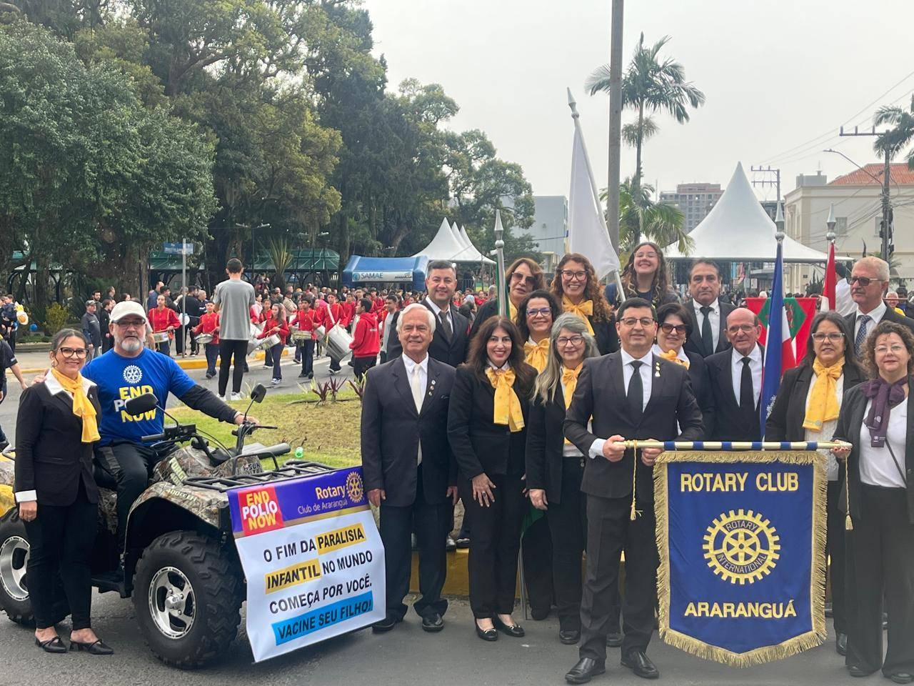 O Rotary Club Araranguá participou do tradicional desfile do 07 de Setembro, organizado pelo Governo Municipal, o desfile aconteceu no centro da cidade. O Clube através das faixas e banners mostrou seus principais projetos, O Bebê e sua árvore, Intercambio Internacional, o lar de Idosos São Vicente de Paulo e a campanha pelo fim da Pólio no mundo, no desfile representado pelo Companheiro Vâneo Porto, que foi acometido pelo vírus poliovirus em sua infância.